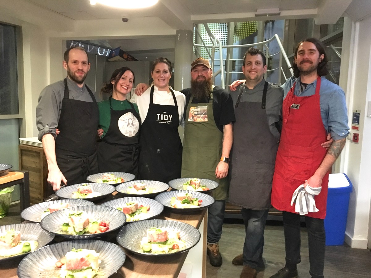 From left to righ: Lee (Cocorico), Lia (Lia’s Kitchen), Laura (Tidy Kitchen Co), Dai (Lia’s Kitchen/Green City Events volunteer), Laurian (Cocorico Patisserie), Dan Barnett (Green City Event)
