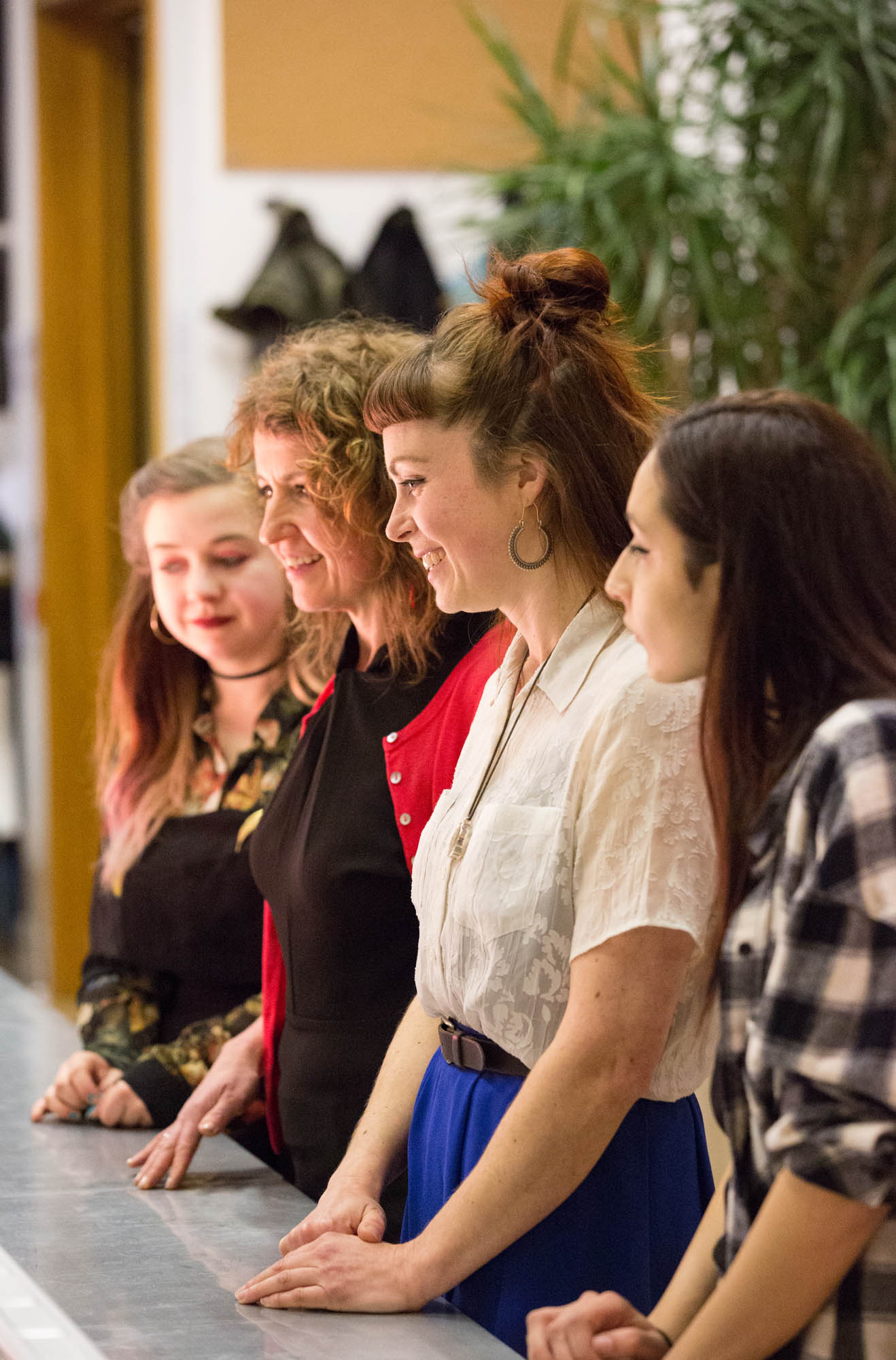 Milk and Sugar staff and Sian (Wasteless volunteer) and Becca (Green City Events) in the middle – During service