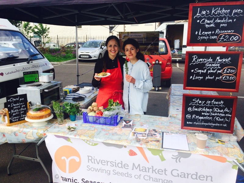 Alongside with discussions I had last autumn with Poppy Nicol working with Riverside Market Garden these visits became the inspiration for a pop-up pie shop at Roath Farmers’ Market on 23 May 2015. This was a true collaboration with hardworking growers. The Greek pies we offered people used fresh ingredients from Riverside Market Garden, either picked or foraged from the farm a couple of days before the event. Blaencamel Farm also supplied some of their delightful rainbow chard.