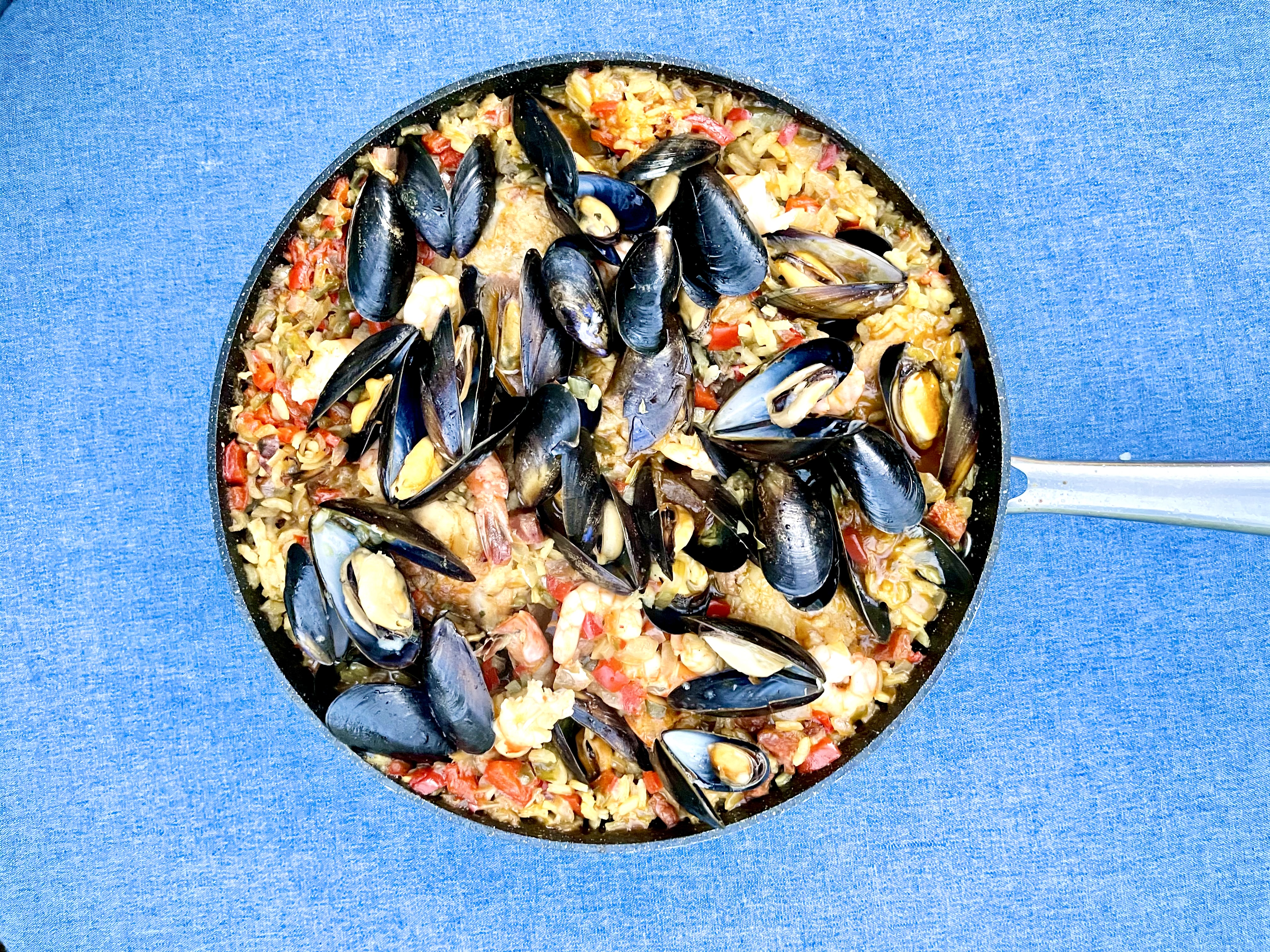 - In honour of the Valencian paella I like my rice slightly caramelised at the bottom. Only add the mussels in when you are sure most of the water had evaporated.