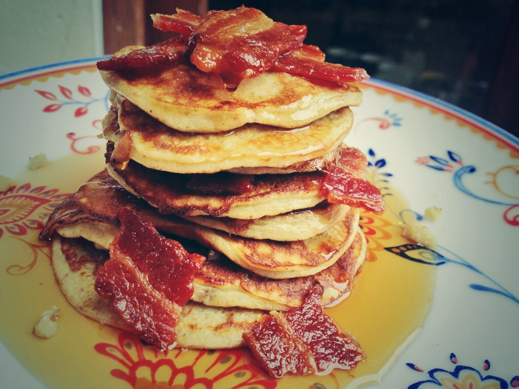 - Serve with crispy bacon and maple syrup, or fruit, yoghurt and honey.