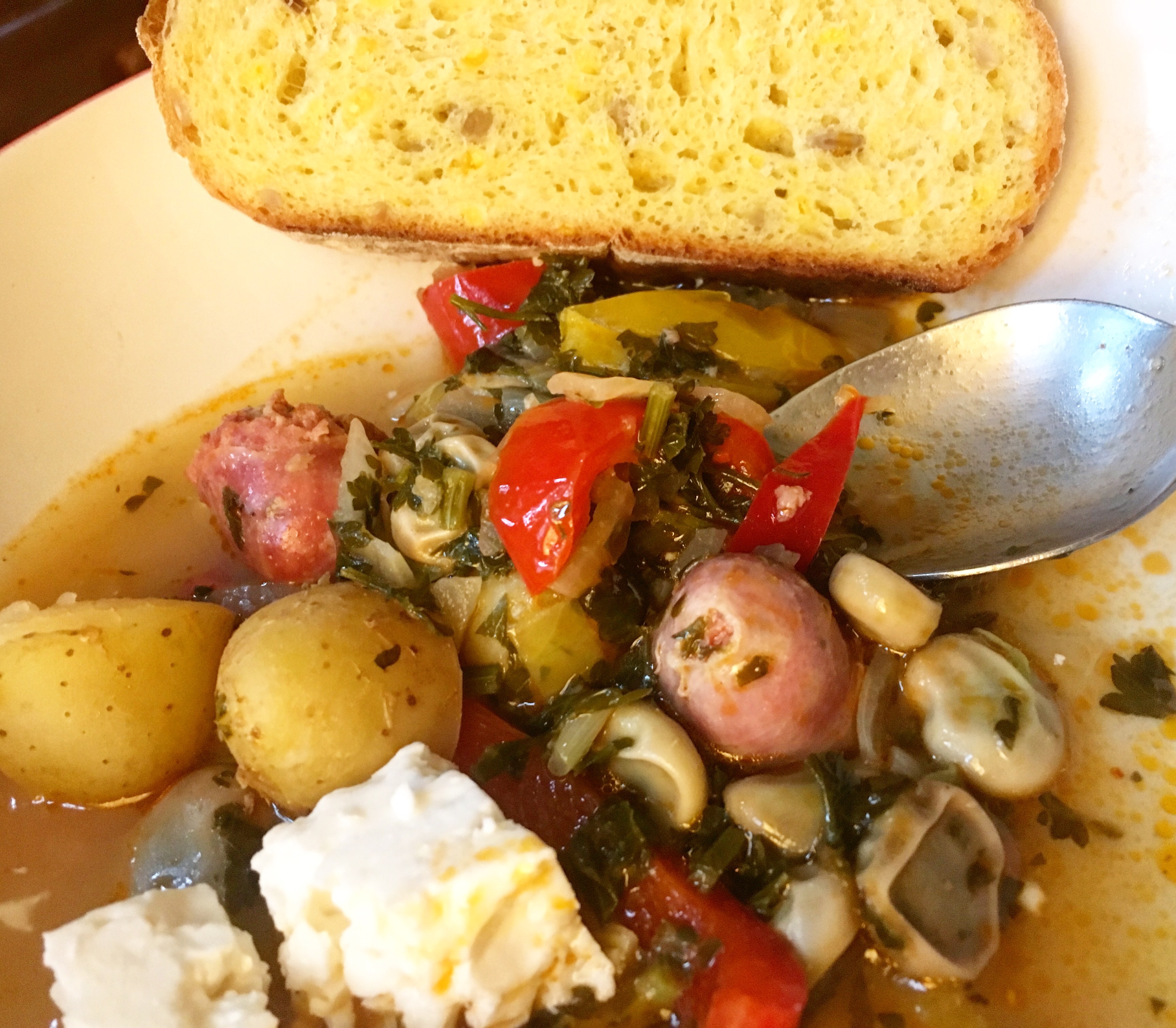 May’s Recipe – Vegetarian Mageiritsa, a Greek soup of greens and mushroom